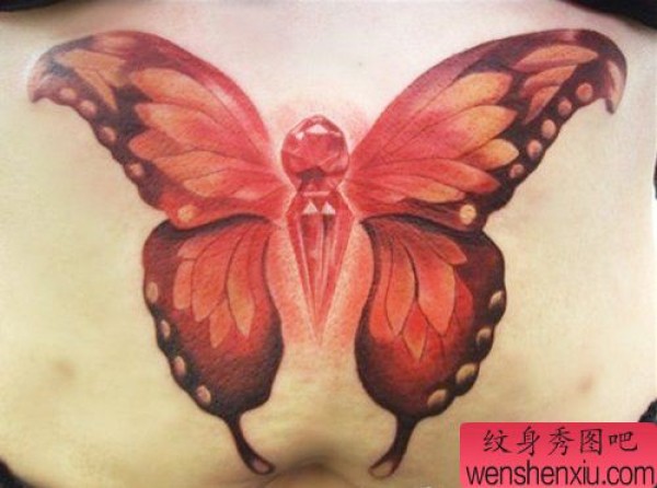 好看漂亮的钻石蝴蝶翅膀纹身图案