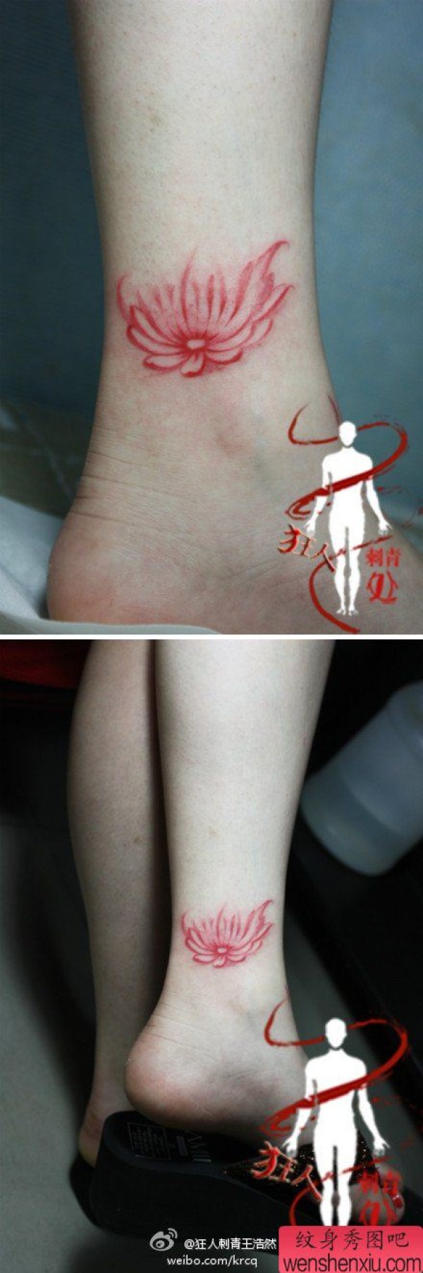 美女脚腕处好看的彩色莲花纹身图案