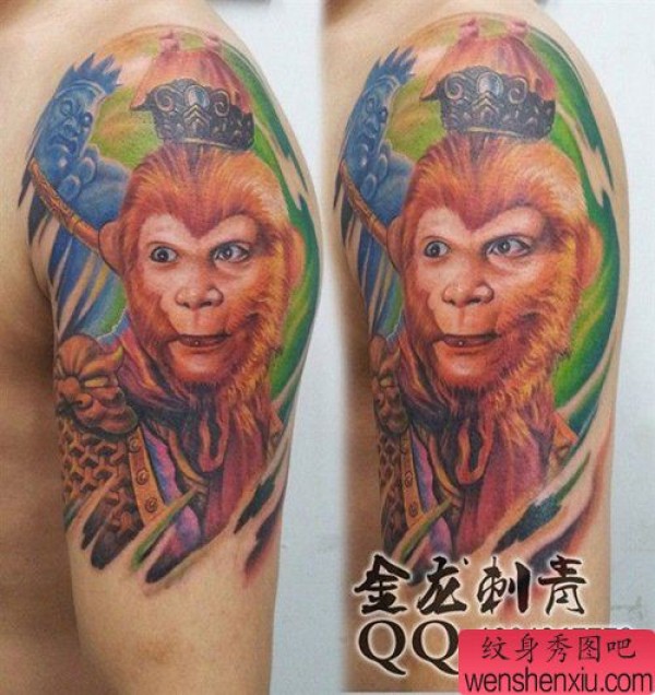 男士手臂很酷的齐天大圣孙悟空纹身图案