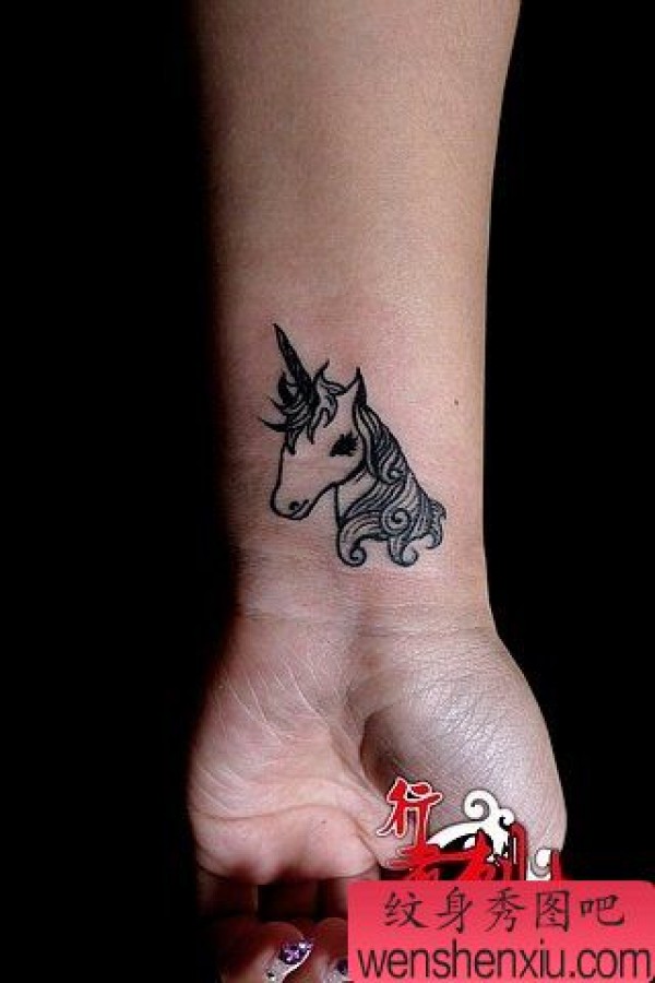 女孩子手腕处图腾小独角兽纹身图案