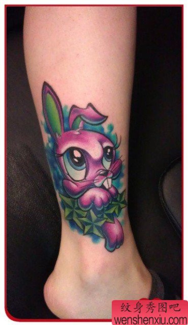 女生腿部卡哇呀的兔子纹身图案