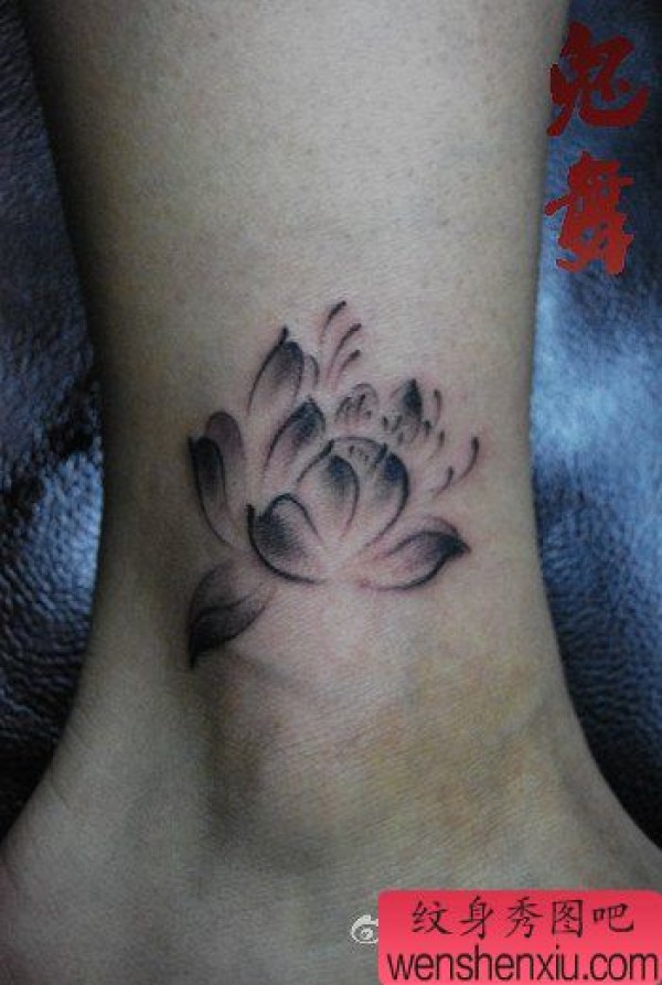 MM脚踝处好看的水墨莲花纹身图案