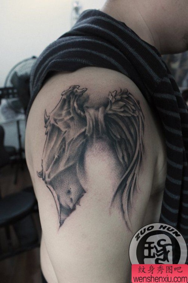 男生手臂好看的天使与恶魔的翅膀纹身图案