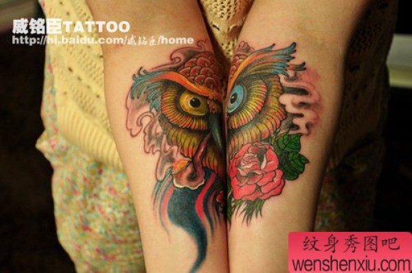 女生手臂经典好看的猫头鹰纹身图案