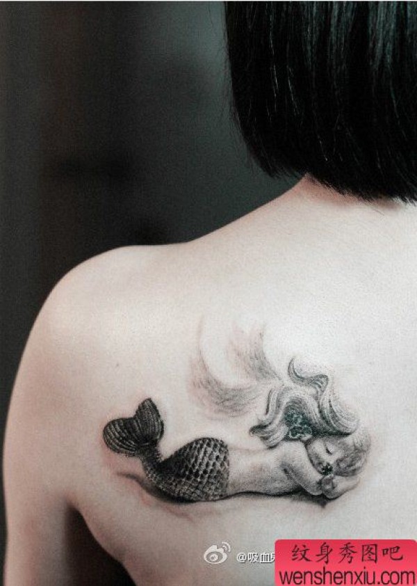 女生肩背卡哇伊的美人鱼纹身图案