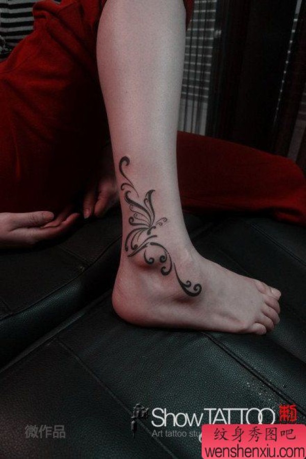 女生脚踝处好看的图腾蝴蝶纹身图案