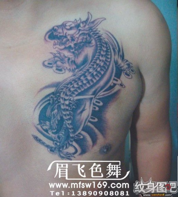 龙纹身手稿_一组老传统黑灰龙手稿纹身图案