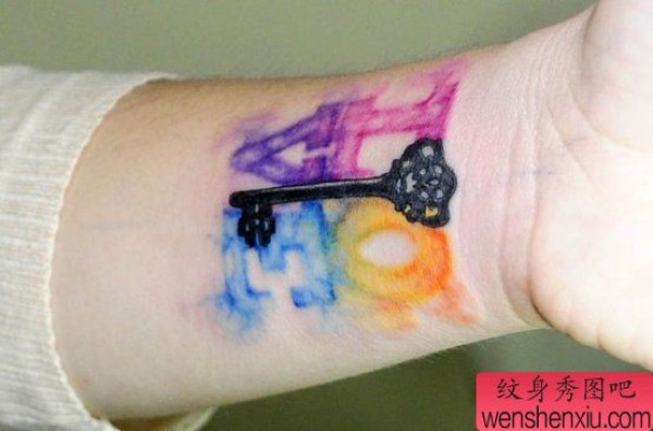 女生手臂唯美的小钥匙与字母纹身图案