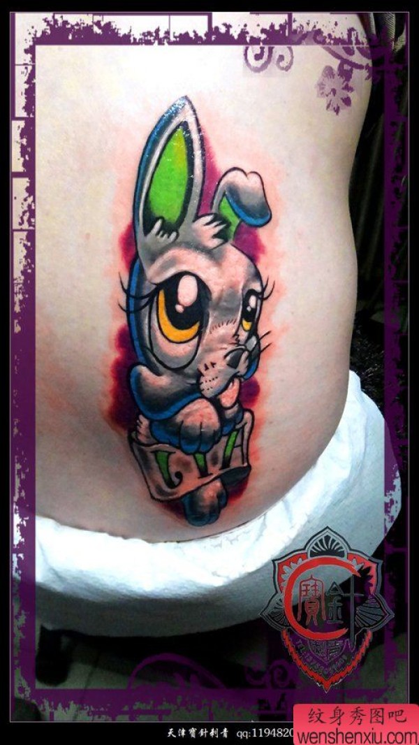 腰部可爱的卡通兔子纹身图案