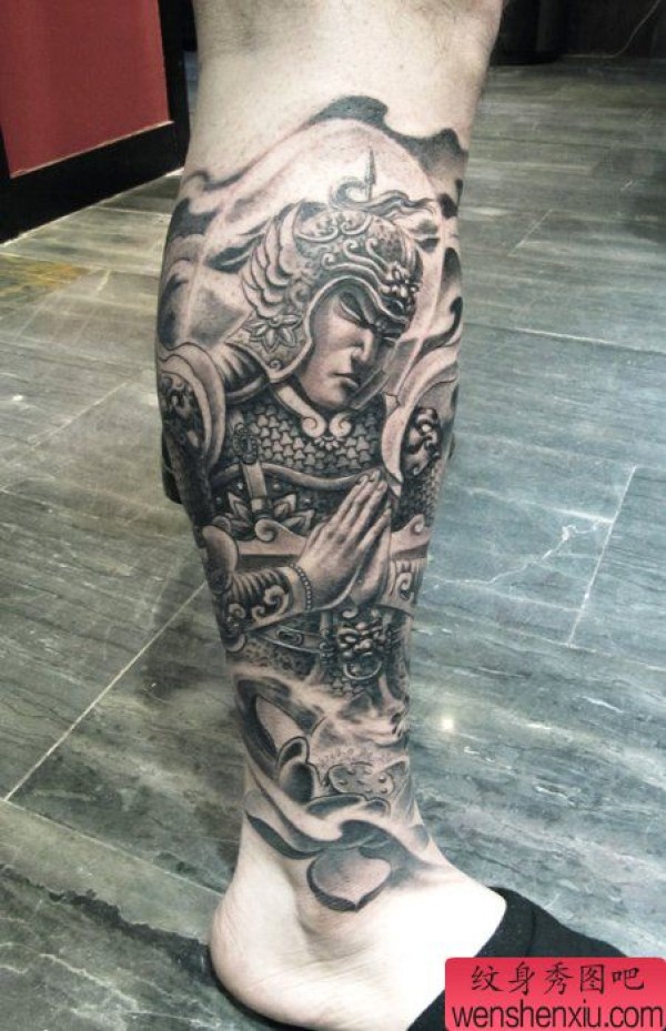 男士腿部经典帅气的韦驮菩萨纹身图案