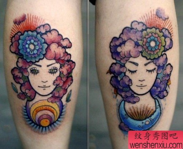 腿部唯美好看的卡通美女纹身图案