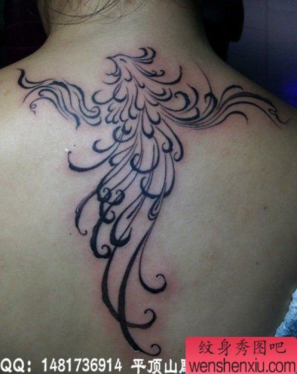 女生背部经典好看的图腾凤凰纹身图案