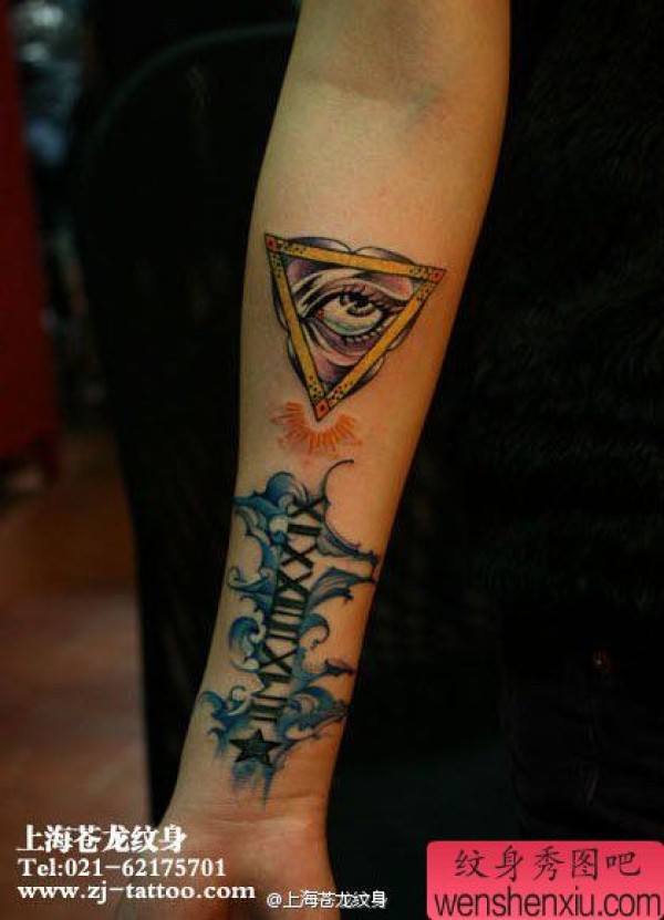 女生手臂漂亮时尚的上帝之眼纹身图案