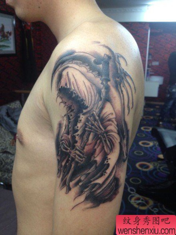 男士手臂经典的死神纹身图案