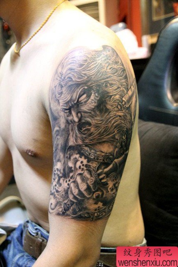 男士手臂帅气经典的姜太公姜子牙纹身图案