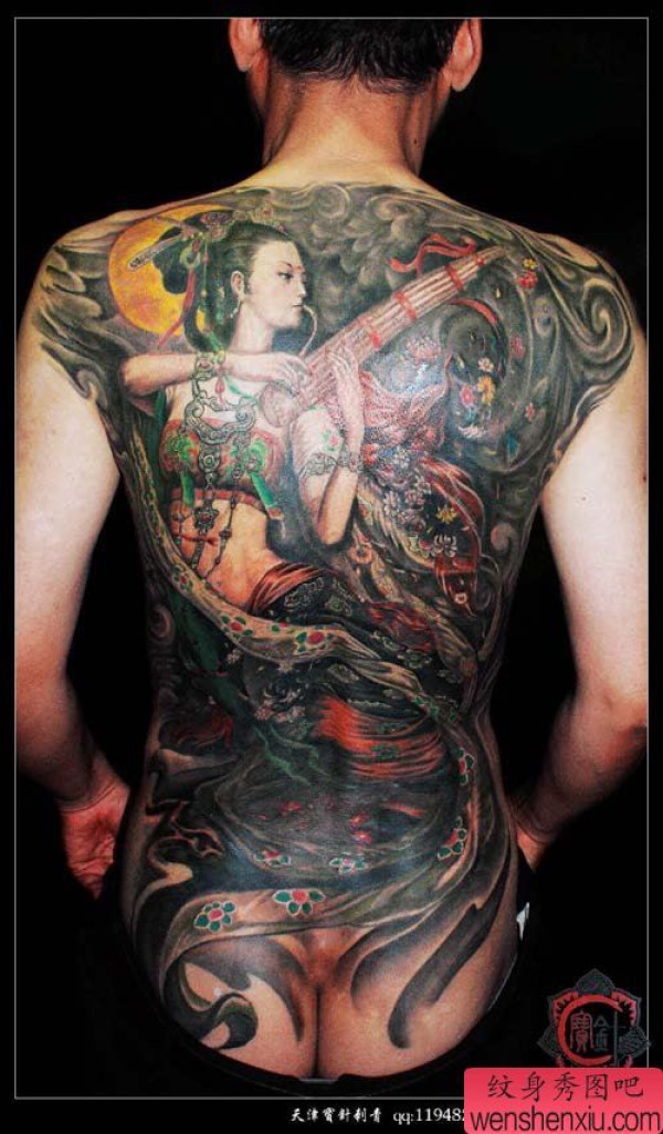 男士背部漂亮的满背美女飞天敦煌纹身图案
