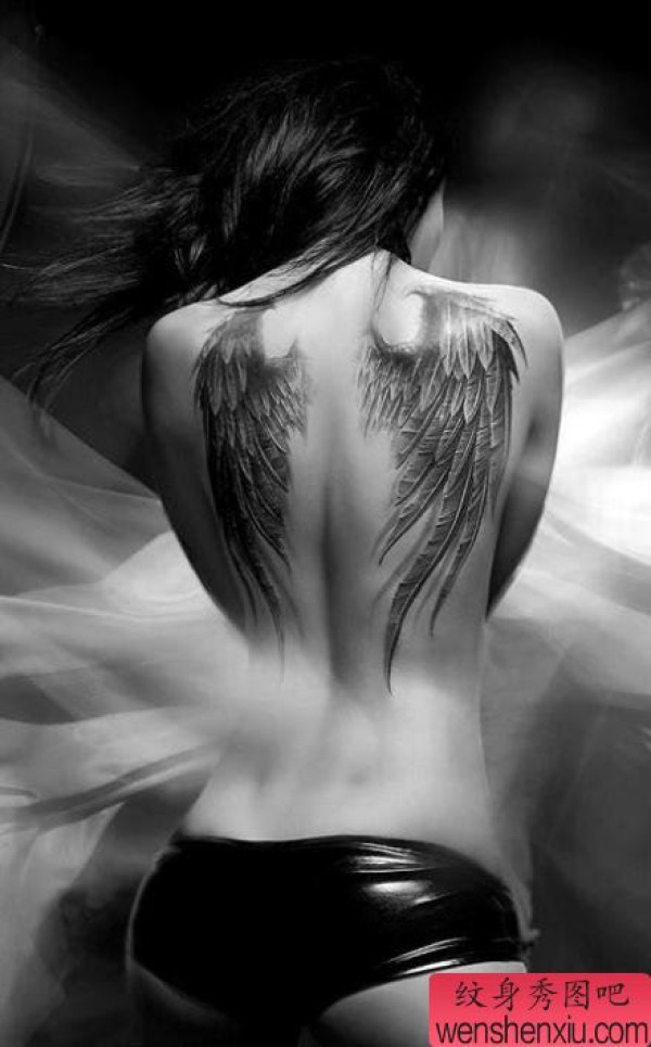 最时尚时尚的美女背部翅膀纹身图案