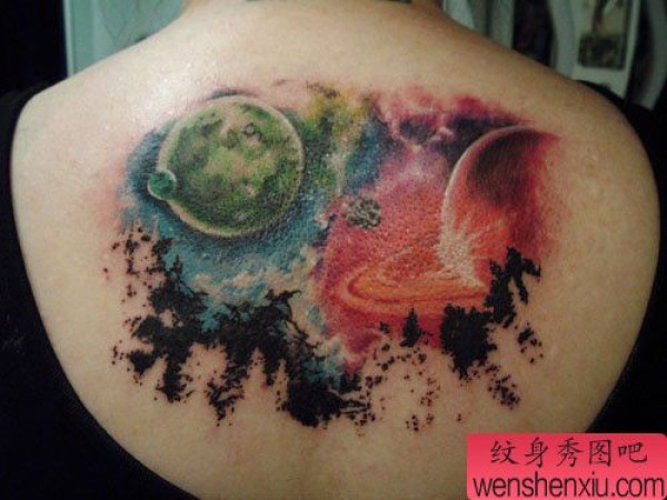 女生背部时尚精美的星空纹身图案