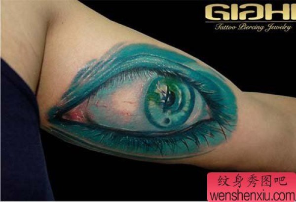 手臂内侧漂亮精美的彩色眼睛纹身图案