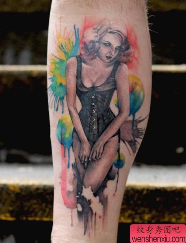 腿部时尚性感的美女纹身图案