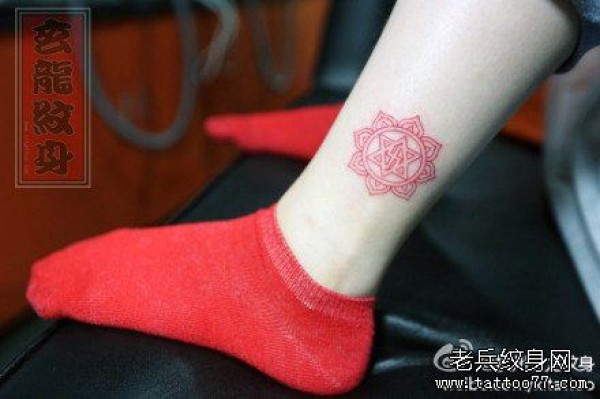 女生腿部时尚漂亮的六芒星与莲花纹身图案