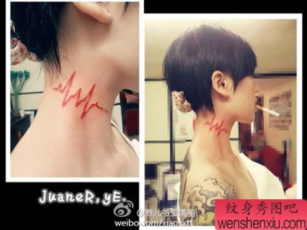 女生颈部唯美时尚的心电图纹身图案