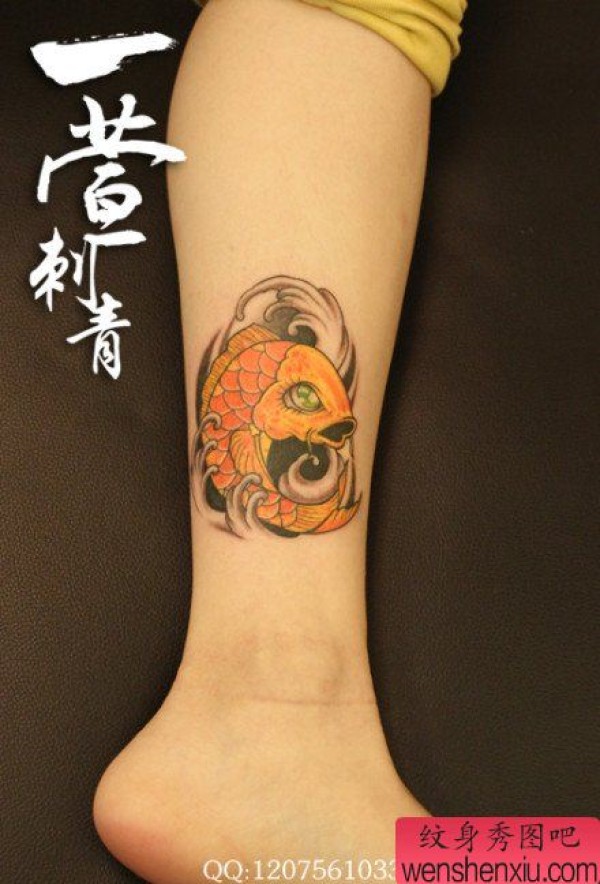 女生腿部好看时尚的彩色小鲤鱼纹身图案