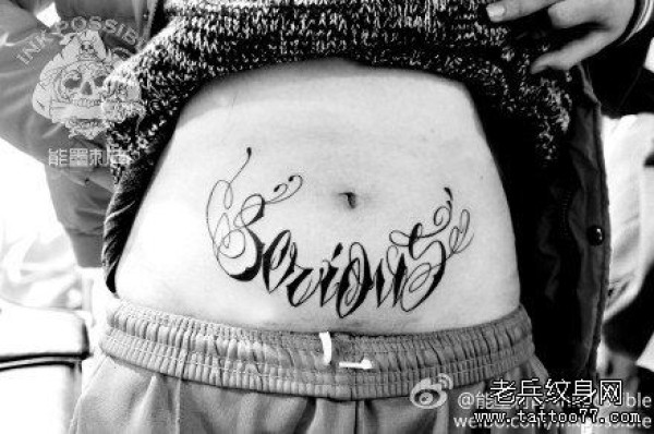 女生腹部时尚漂亮的花体英文字母纹身图案