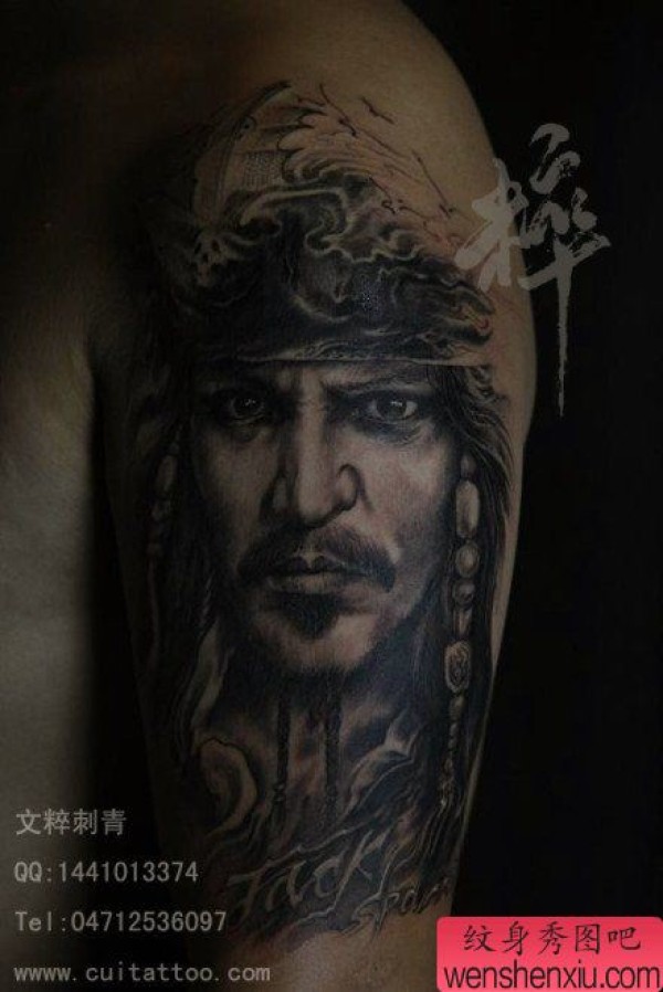 手臂帅气的加勒比海盗杰克船长纹身图案