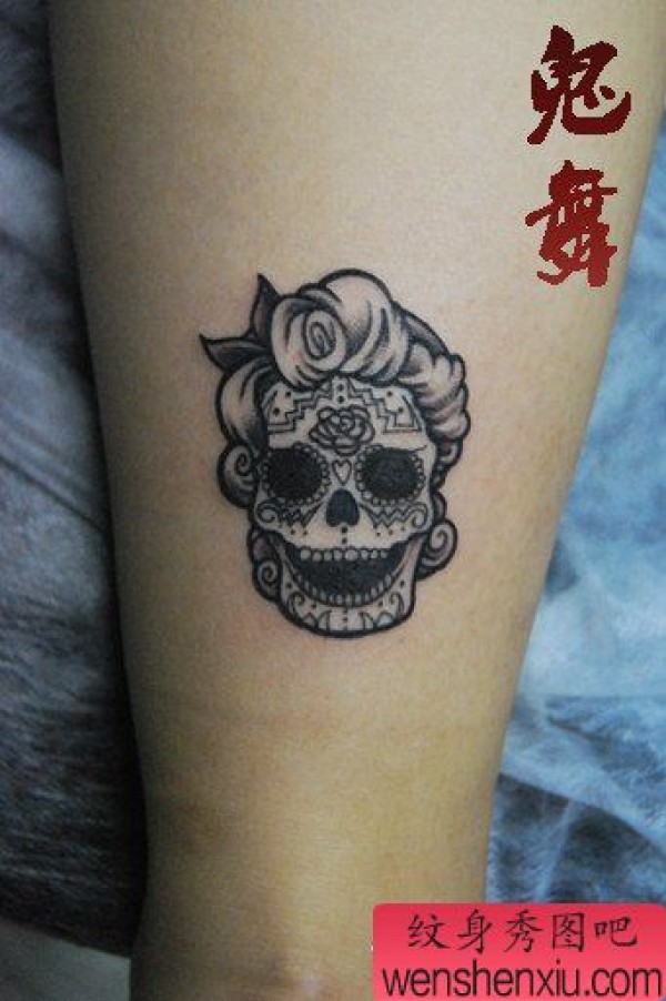 女生腿部可爱唯美的小骷髅纹身图案