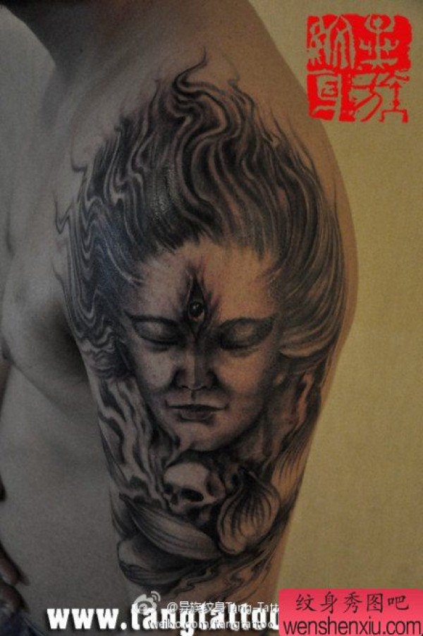男士手臂时尚经典的二郎神纹身图案