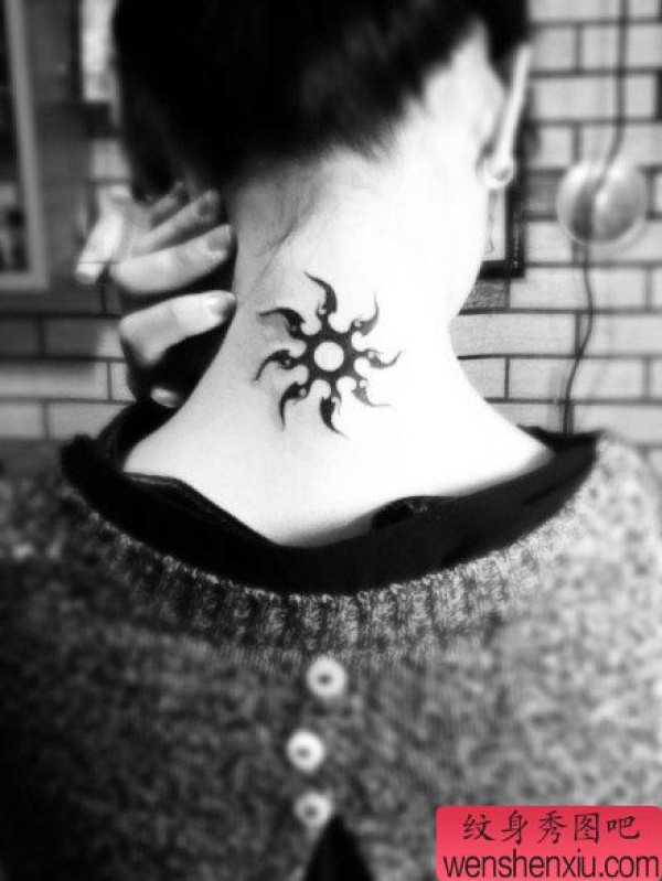 女孩子颈部好看时尚的图腾太阳纹身图案