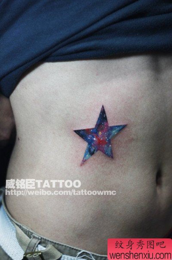 男生腹部超帅的彩色星空五角星纹身图案