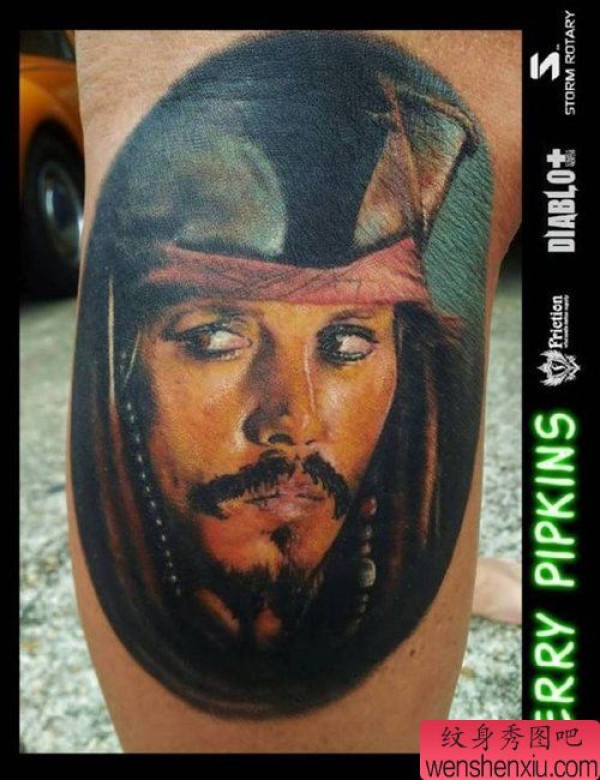手臂帅气时尚的加勒比海盗杰克船长纹身图案