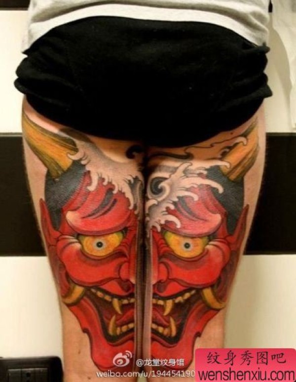 女生腿部帅气超酷的般若纹身图案