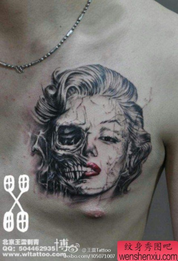 男士胸部漂亮另类的玛丽莲梦露与骷髅纹身图案