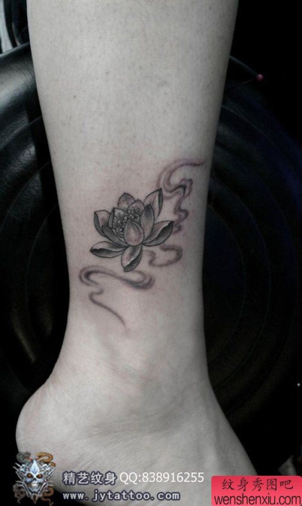 女生小腿唯美时尚的莲花纹身图案