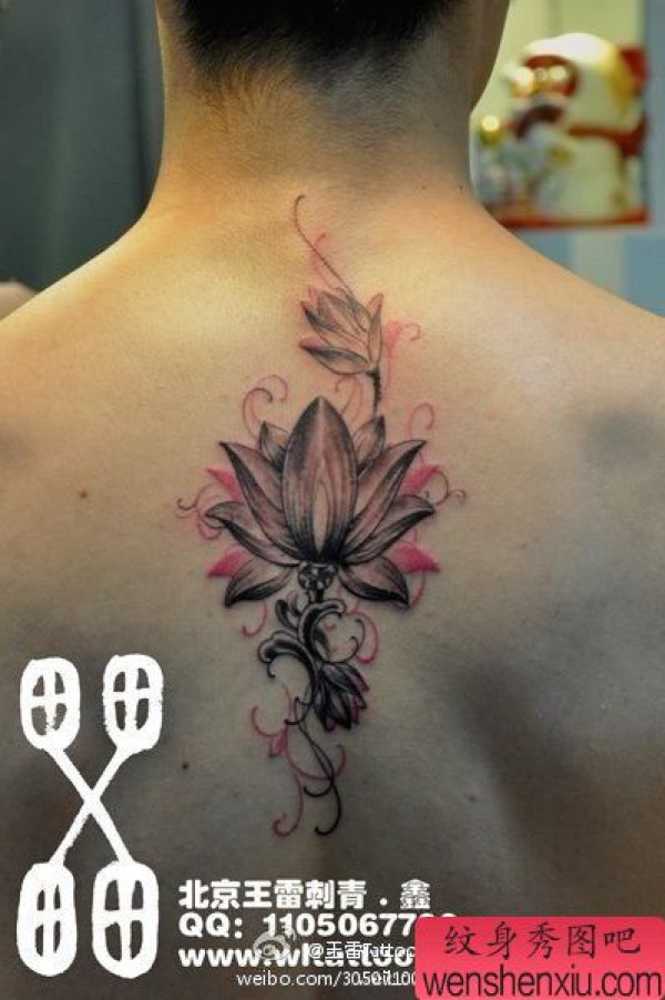 男士背部时尚好看的莲花纹身图案