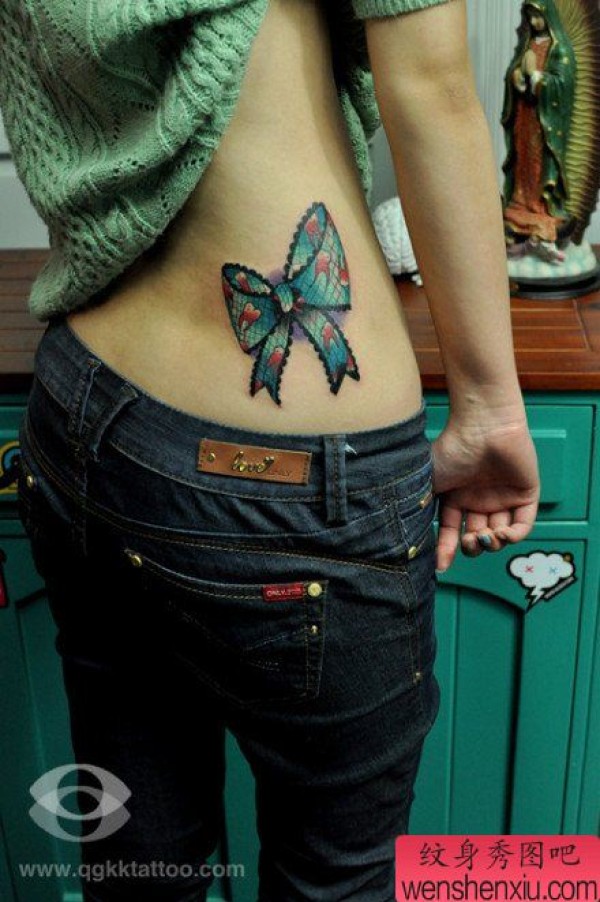 美女腰部精美时尚的蕾丝蝴蝶结纹身图案