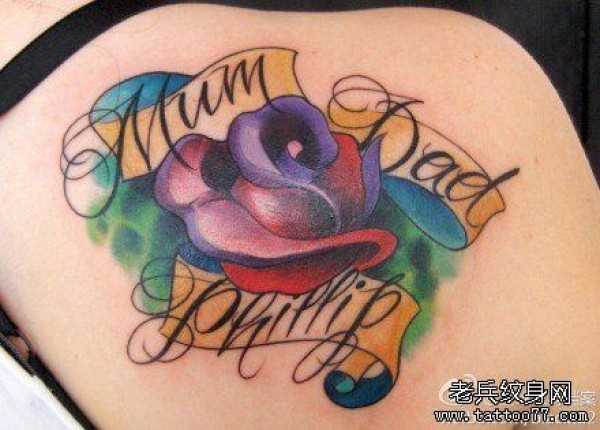 女孩子肩背好看时尚的玫瑰花纹身图案