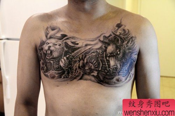 男士前胸帅气超酷的兔子与牛纹身图案