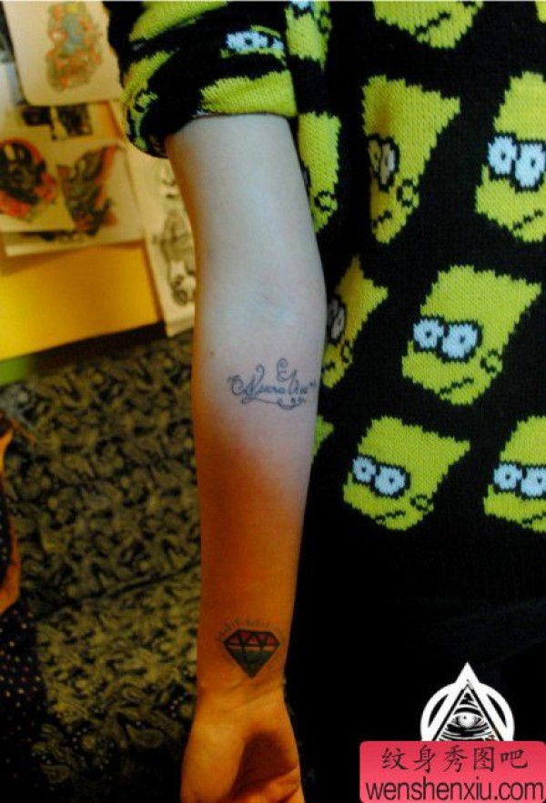 手臂时尚小巧的彩色小钻石纹身图案