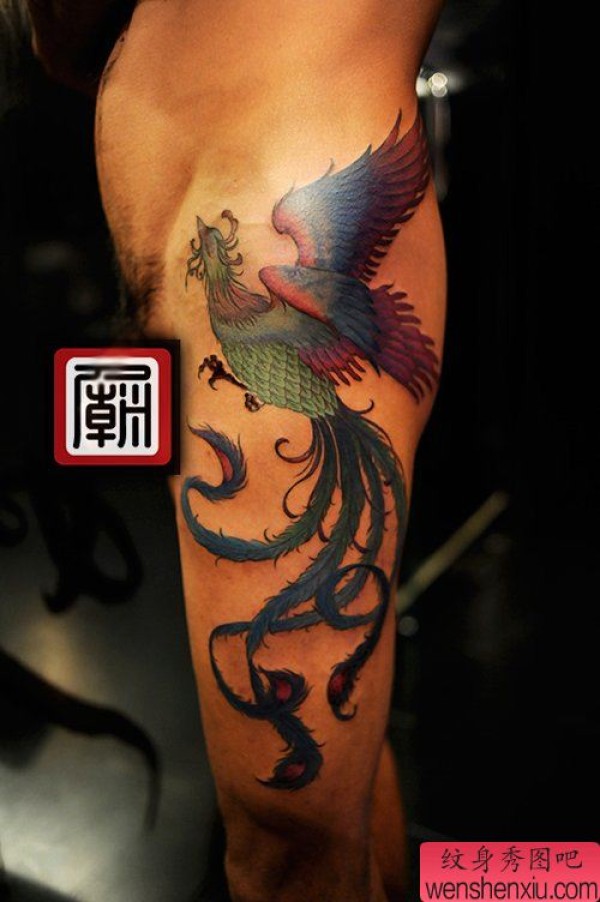 男士腿部经典时尚的凤凰纹身图案