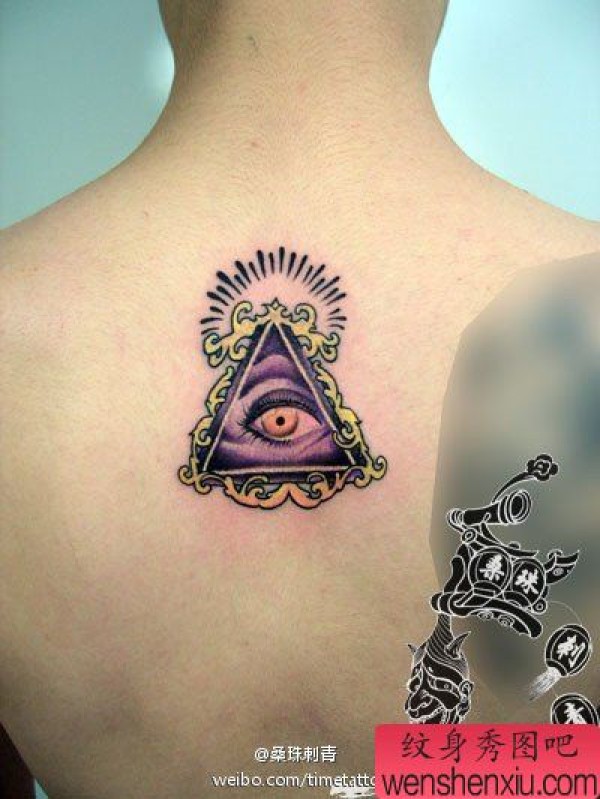 男生背部时尚经典的眼睛纹身图案