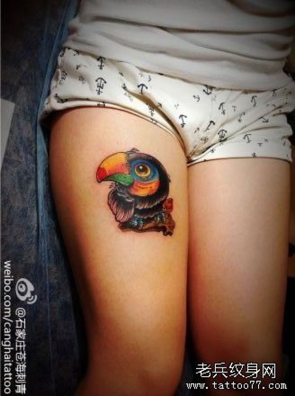 美女腿部可爱时尚的大嘴鸟纹身图案