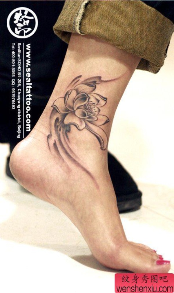 女生脚踝处时尚唯美的莲花纹身图案