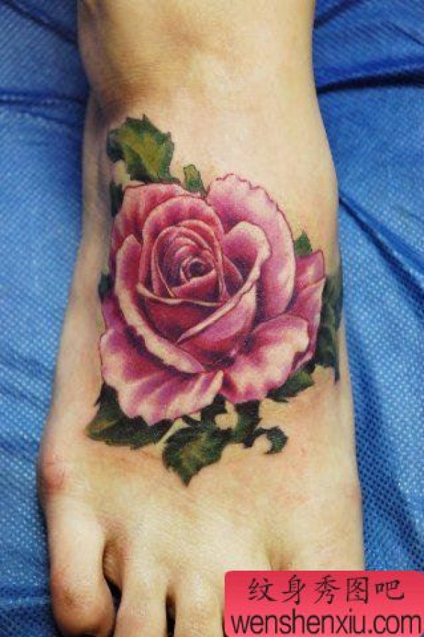 女生脚背时尚漂亮的玫瑰花纹身图案