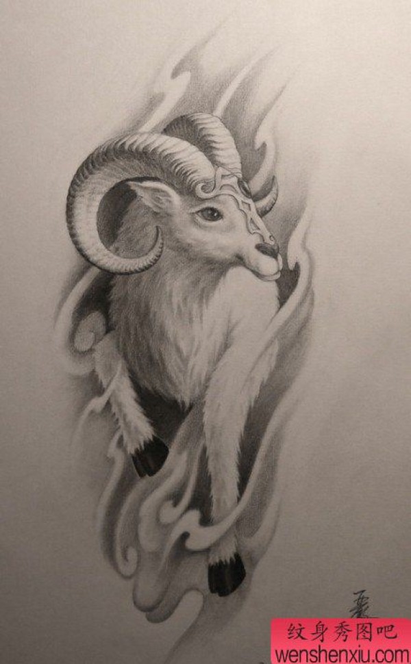 一张时尚经典的摩羯座纹身手稿