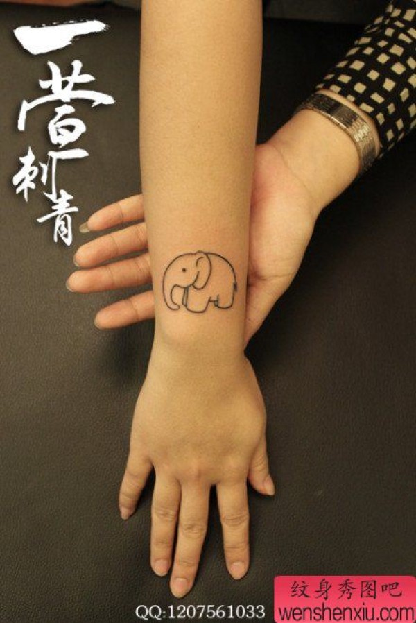 女生手腕小巧时尚的小象纹身图案