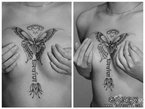 诱人的美女胸部时尚的蝴蝶纹身图案